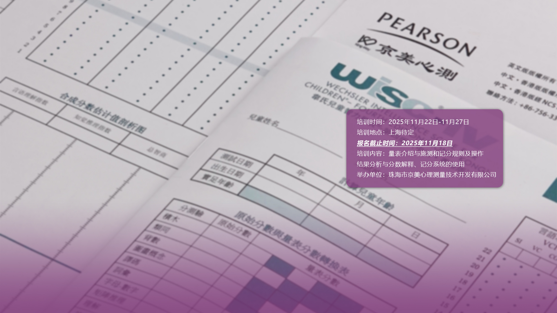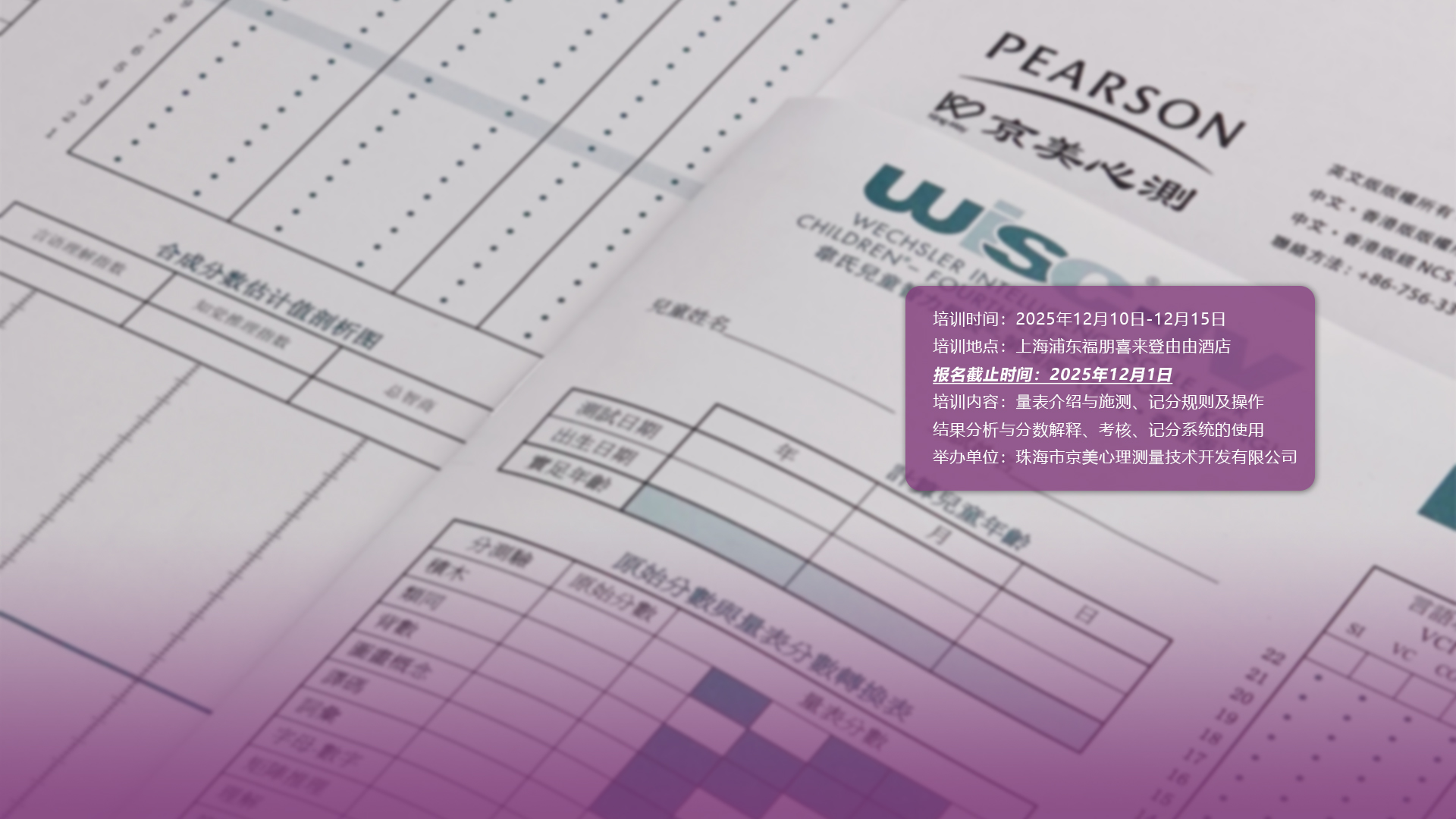 美国培生临床评估公司(Pearson Clinical Assessments)授权 珠海市京美心理测量技术开发有限公司组织修订